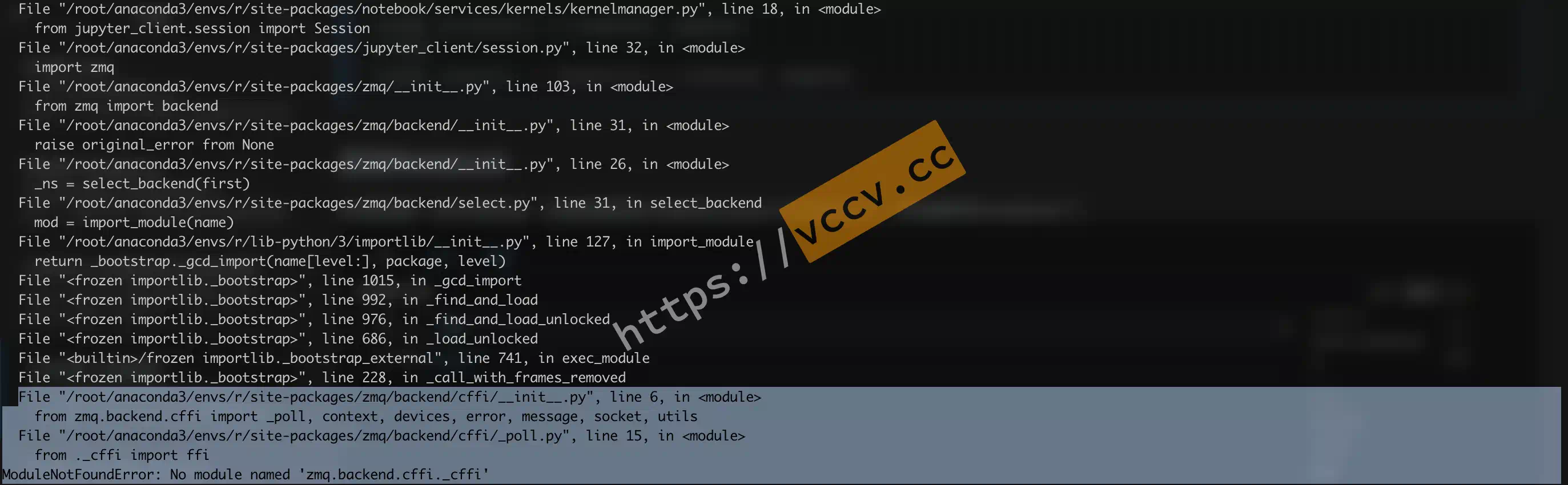 异常处理# 模块缺失# 如果在启动notebook时提示 ModuleNotFoundError: No module named ‘zmq.backend.cffi._cffi’ ,如下图类似的情况: