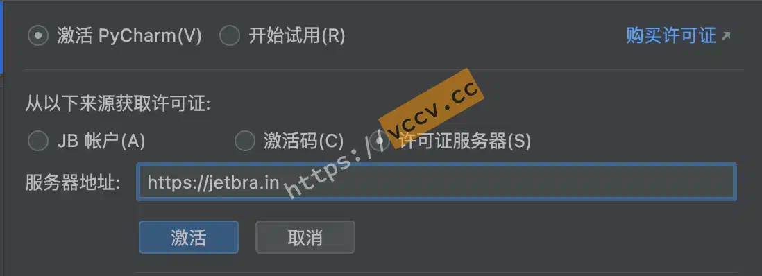 选择 License Server 方式(许可证服务器),输入服务器地址:https://jetbra.in ,然后激活即可。