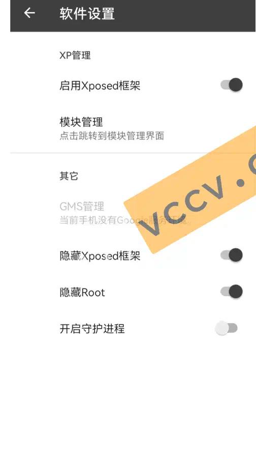 点击右上角的三个点,点击软件设置,开启 启用Xposed框架、隐藏Xposed框架、隐藏Root 三个功能。