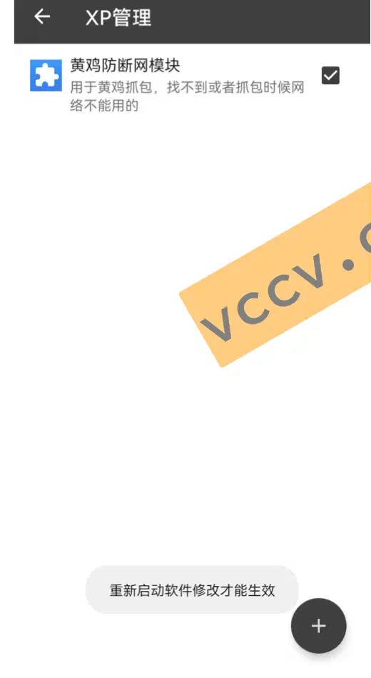 点击模块管理,点加号添加黄鸡防断网模块并勾选上。