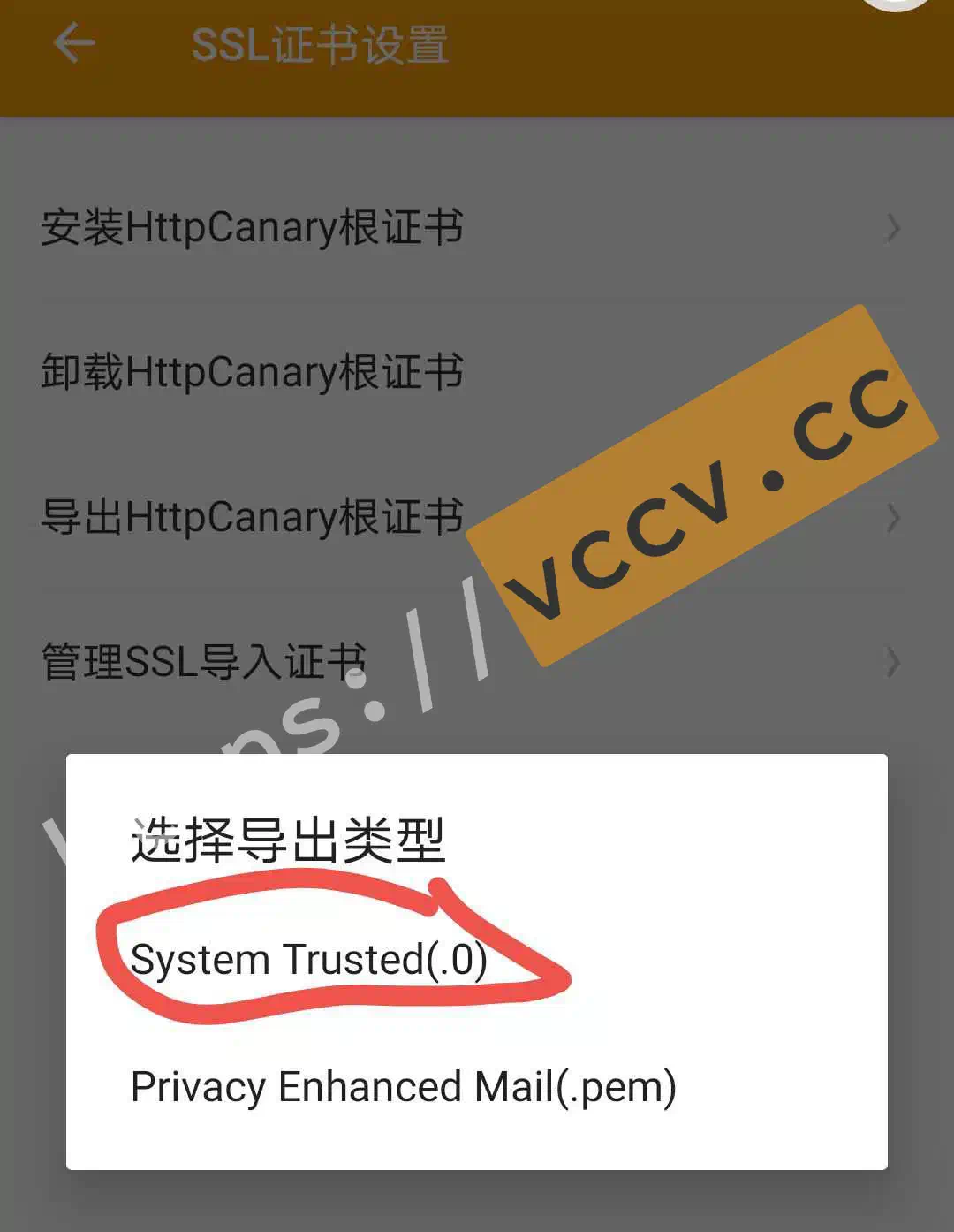打开抓包软件,在 设置->SSL证书设置->导出HttpCanary根证书->System Trusted(.0) 可以找到。