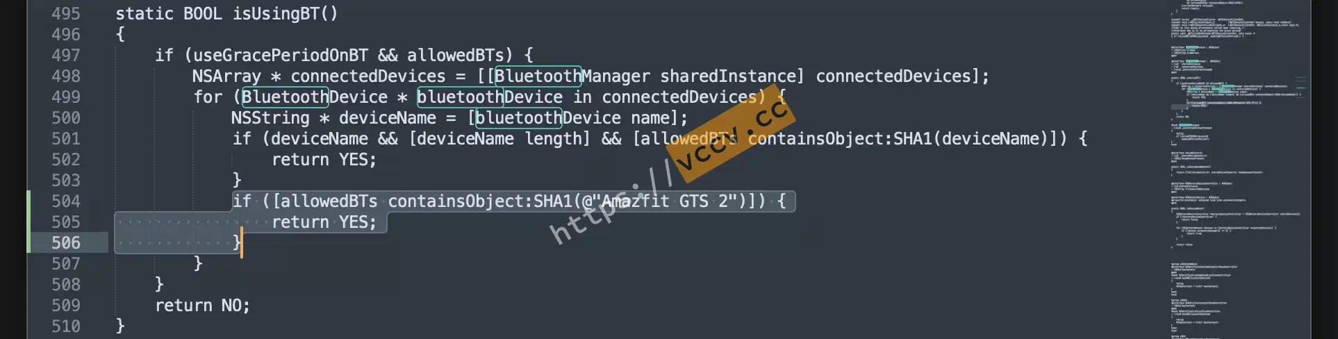 | if ([allowedBTs containsObject:SHA1(@"Amazfit GTS 2")]) {