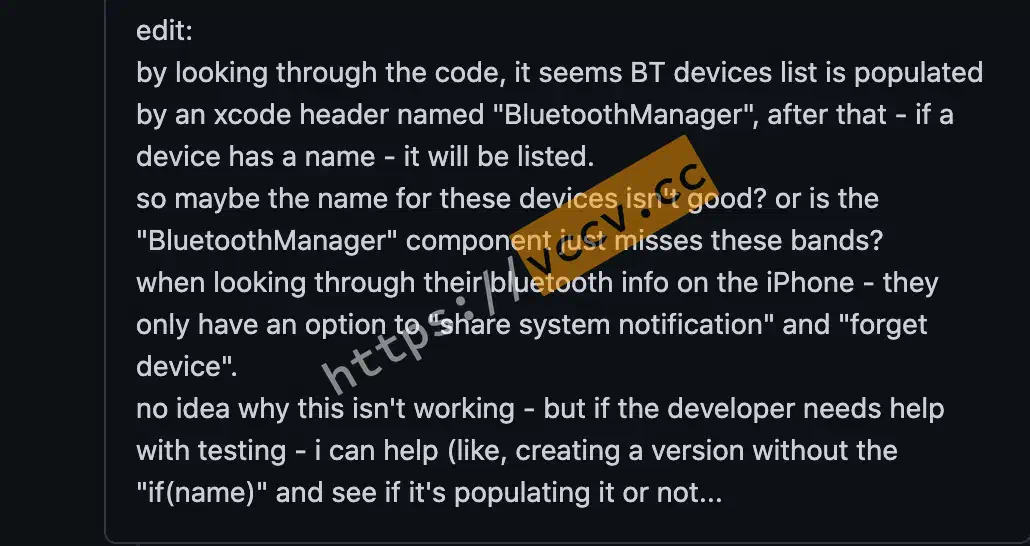 He says the BluetoothManager header used to get the Bluetooth device, can we get it by creating a version without if(name).