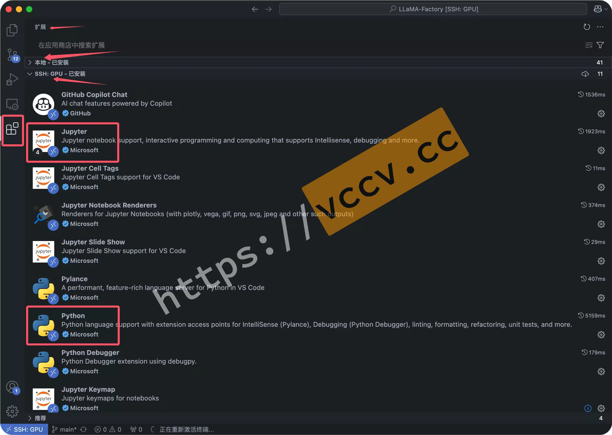 Remote-SSHextension → remote extension- Jupyter Notebook → notebook